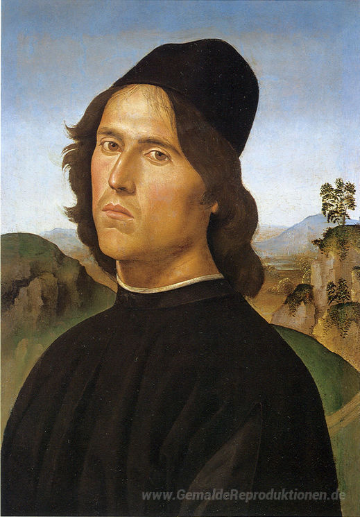 Wir bieten Ihnen eine handgefertigte Reproduktion auf Leinwand des berühmten Kunstwerks 'Porträt von Lorenzo di Credi' von Pietro Perugino, aus dem Reproduktionsmuseum.