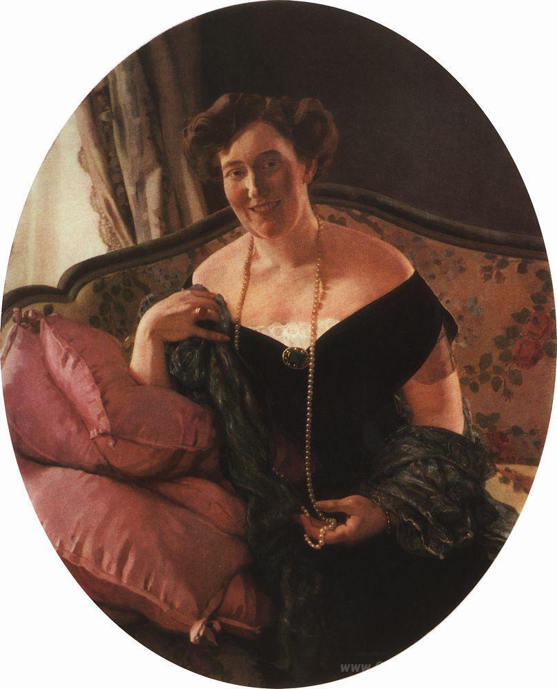 Wir bieten Ihnen eine handgefertigte Reproduktion auf Leinwand des berühmten Kunstwerks 'Porträt von M. Karpova' von Konstantin Somov, aus dem Reproduktionsmuseum.