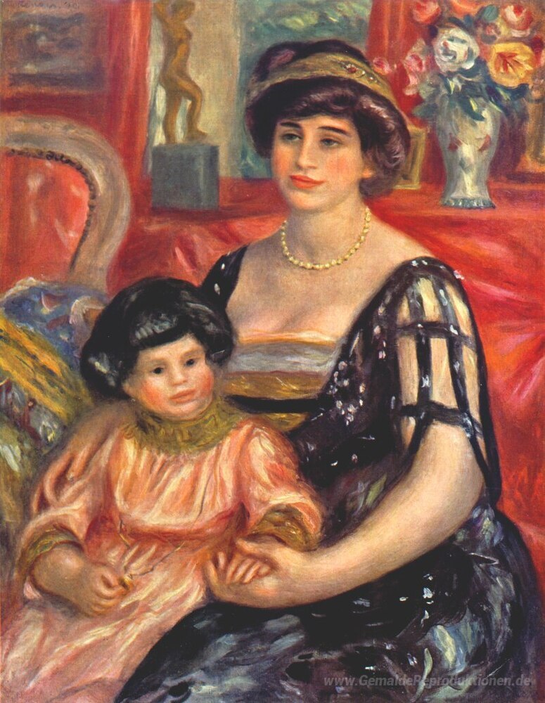 Wir bieten Ihnen eine handgefertigte Reproduktion auf Leinwand des berühmten Kunstwerks 'Porträt von Madame Duberville mit ihrem Sohn Henri' von Pierre-Auguste Renoir, aus dem Reproduktionsmuseum.