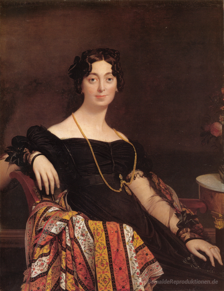 Wir bieten Ihnen eine handgefertigte Reproduktion auf Leinwand des berühmten Kunstwerks 'Porträt von Madame Leblanc' von Jean Auguste Dominique Ingres, aus dem Reproduktionsmuseum.
