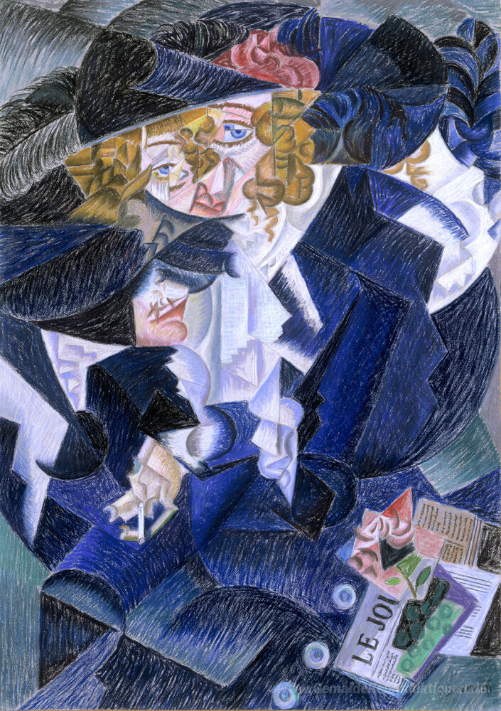 Wir bieten Ihnen eine handgefertigte Reproduktion auf Leinwand des berühmten Kunstwerks 'Porträt von Madame M. S.' von Gino Severini, aus dem Reproduktionsmuseum.
