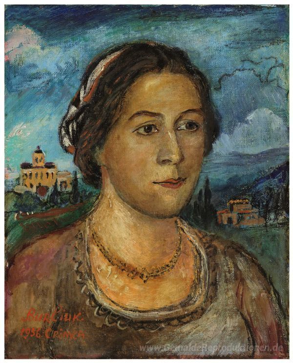 Willkommen in unserer exquisiten Kollektion von Ölgemälden, in der Kunst und Emotion auf einzigartige Weise verschmelzen. Zwischen den lebendigen Farben und der Detailverliebtheit der Werke finden Sie Meisterwerke wie das Porträt von Marussia Burliuk, geschaffen von dem renommierten Künstler David Burliuk. Als einer der Pioniere der russischen Avantgarde bringt Burliuk mit seinem unverwechselbaren Stil und innovativen Techniken eine faszinierende Dynamik in jedes seiner Gemälde.