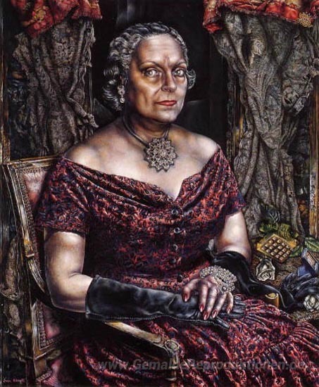 Wir bieten Ihnen eine handgefertigte Reproduktion auf Leinwand des berühmten Kunstwerks 'Porträt von Mary-Block' von Ivan Albright, aus dem Reproduktionsmuseum.