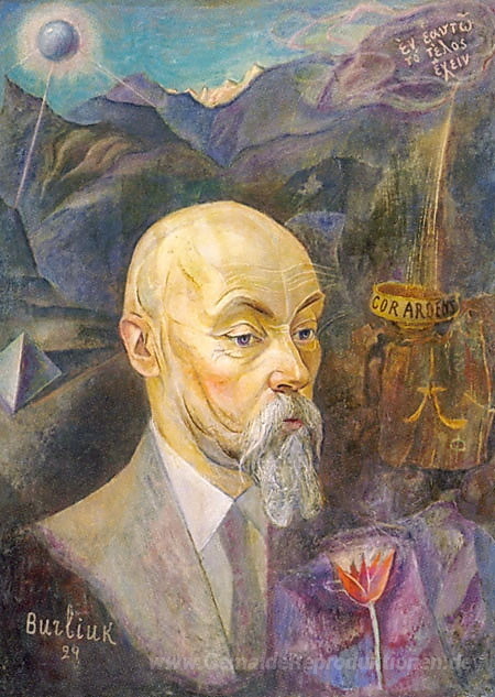 Wir bieten Ihnen eine handgefertigte Reproduktion auf Leinwand des berühmten Kunstwerks 'Porträt von Nicholas Roerich' von David Burliuk, aus dem Reproduktionsmuseum.