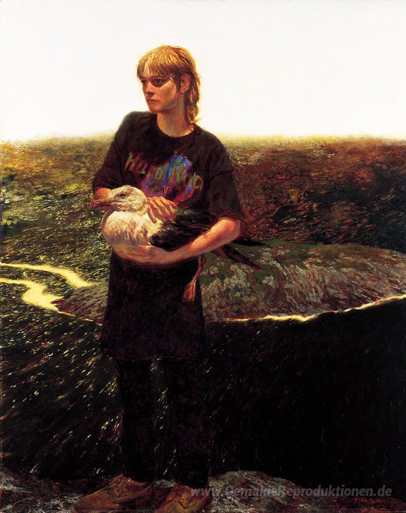 Willkommen in der faszinierenden Welt der Ölgemälde, in der jedes Kunstwerk eine einzigartige Geschichte erzählt und neue Dimensionen in Ihr Zuhause bringt. Entdecken Sie das beeindruckende Porträt von Orca Bates, geschaffen von dem renommierten amerikanischen Künstler Jamie Wyeth. Wyeth, ein Meister der figurativen Malerei, verbindet traditionelle Techniken mit einem modernen Blick auf die Natur und Menschlichkeit. Seine Kunstwerke sind geprägt von Detailverliebtheit und emotionaler Tiefe, die den Betrachter zum Nachdenken anregen.