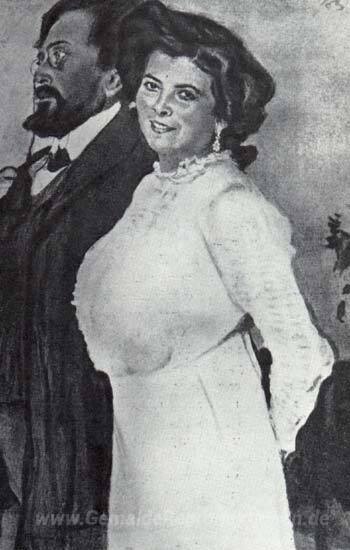 Wir bieten Ihnen eine handgefertigte Reproduktion auf Leinwand des berühmten Kunstwerks 'Porträt von Rechtsanwalt Oscar Osipovich Grusenberg mit seiner F' von Valentin Serov, aus dem Reproduktionsmuseum.