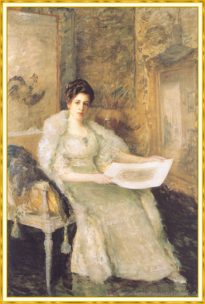 Willkommen auf unserer E-Commerce-Website für exquisite Ölgemälde, wo Kunst und Leidenschaft aufeinander treffen. Jedes Kunstwerk erzählt eine einzigartige Geschichte, so auch das bemerkenswerte Porträt von Susan Watkins von William Merritt Chase. Chase, ein Meister des Impressionismus, ist bekannt für seine Fähigkeit, Emotionen und Lichtspiele meisterhaft einzufangen. Seine Werke zeichnen sich durch lebendige Farben und feine Details aus, die den Betrachter in den Bann ziehen.