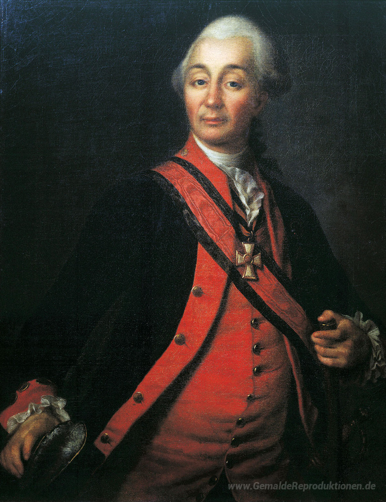 Wir bieten Ihnen eine handgefertigte Reproduktion auf Leinwand des berühmten Kunstwerks 'Porträt von Suvorov' von Dmitry Levitzky, aus dem Reproduktionsmuseum.