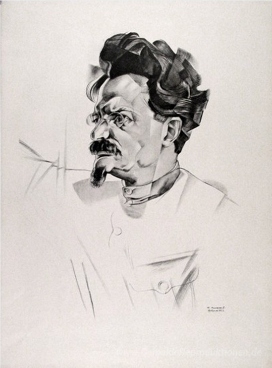 Wir bieten Ihnen eine handgefertigte Reproduktion auf Leinwand des berühmten Kunstwerks 'Porträt von Trotzki' von Jury Annenkov, aus dem Reproduktionsmuseum.