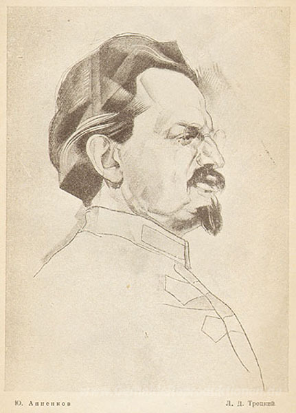 Wir bieten Ihnen eine handgefertigte Reproduktion auf Leinwand des berühmten Kunstwerks 'Porträt von Trotzki' von Jury Annenkov, aus dem Reproduktionsmuseum.