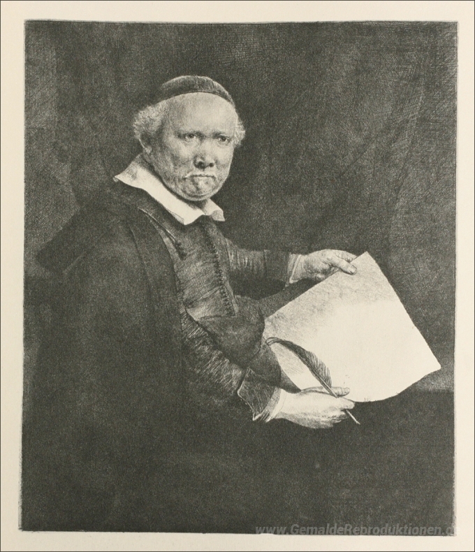 Wir bieten Ihnen eine handgefertigte Reproduktion auf Leinwand des berühmten Kunstwerks 'Portrait Coppenol' von Rembrandt, aus dem Reproduktionsmuseum.