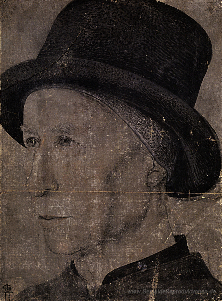 Wir bieten Ihnen eine handgefertigte Reproduktion auf Leinwand des berühmten Kunstwerks 'Portrait der Mann mit Hut' von Jean Fouquet, aus dem Reproduktionsmuseum.