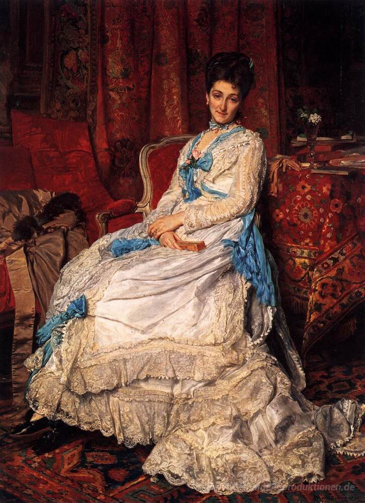 Wir bieten Ihnen eine handgefertigte Reproduktion auf Leinwand des berühmten Kunstwerks 'Portrait der Marquesa de Manzanedo' von Ernest Meissonier, aus dem Reproduktionsmuseum.