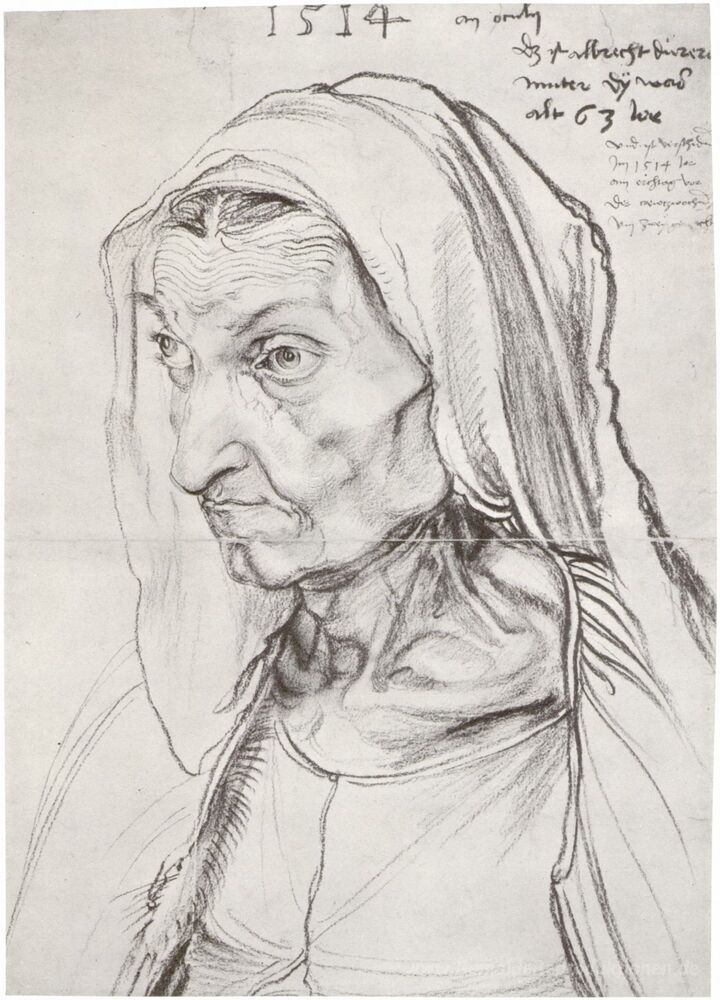 Wir bieten Ihnen eine handgefertigte Reproduktion auf Leinwand des berühmten Kunstwerks 'Portrait der Mutter des Künstlers' von Albrecht Durer, aus dem Reproduktionsmuseum.