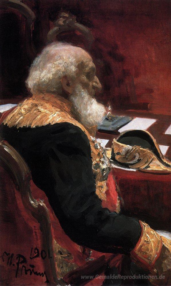 Wir bieten Ihnen eine handgefertigte Reproduktion auf Leinwand des berühmten Kunstwerks 'Portrait des Ehrenmitglied der Akademie der Wissenschaften und d' von Ilya Repin, aus dem Reproduktionsmuseum.