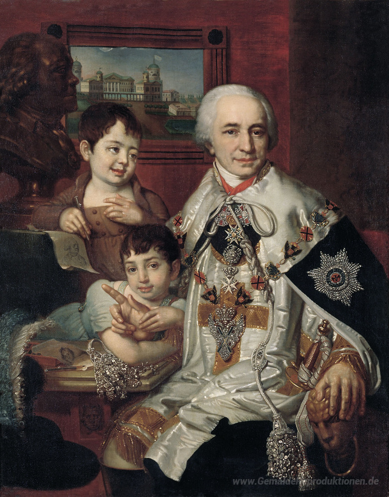 Wir bieten Ihnen eine handgefertigte Reproduktion auf Leinwand des berühmten Kunstwerks 'Portrait des Grafen G. G. Kuschelew' von Vladimir Borovikovsky, aus dem Reproduktionsmuseum.