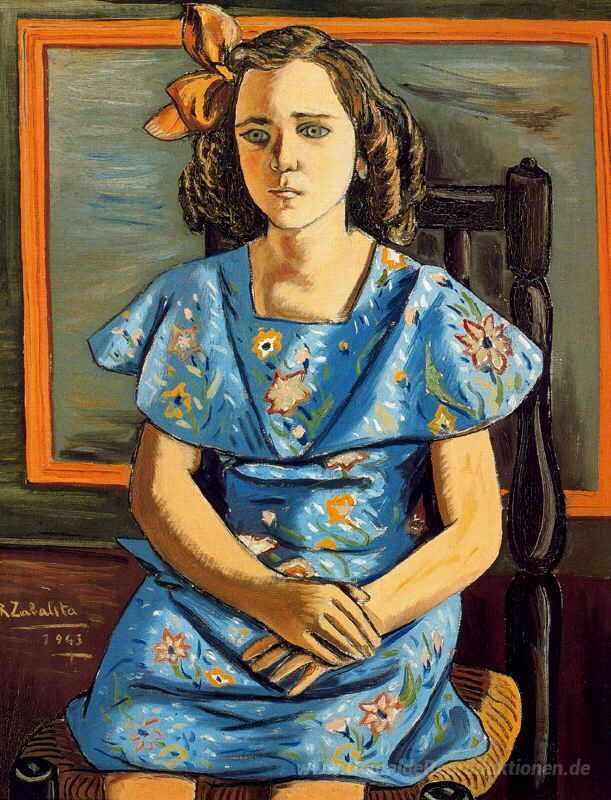 Wir bieten Ihnen eine handgefertigte Reproduktion auf Leinwand des berühmten Kunstwerks 'Portrait des Mädchens sitzend' von Rafael Zabaleta, aus dem Reproduktionsmuseum.