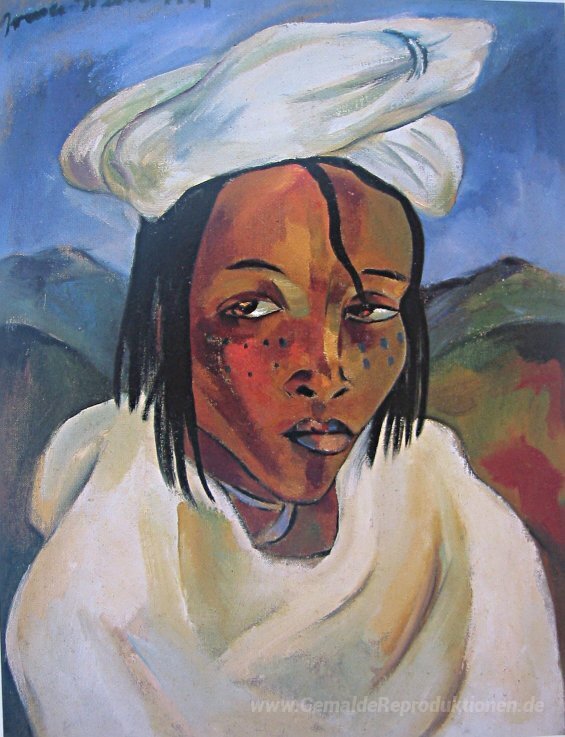 Wir bieten Ihnen eine handgefertigte Reproduktion auf Leinwand des berühmten Kunstwerks 'Portrait einer Frau Pondo' von Irma Stern, aus dem Reproduktionsmuseum.