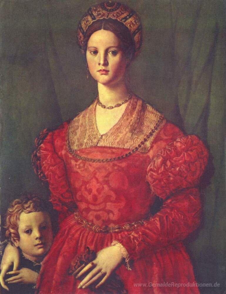 Wir bieten Ihnen eine handgefertigte Reproduktion auf Leinwand des berühmten Kunstwerks 'Portrait einer jungen Frau mit ihrem Sohn' von Agnolo Bronzino, aus dem Reproduktionsmuseum.