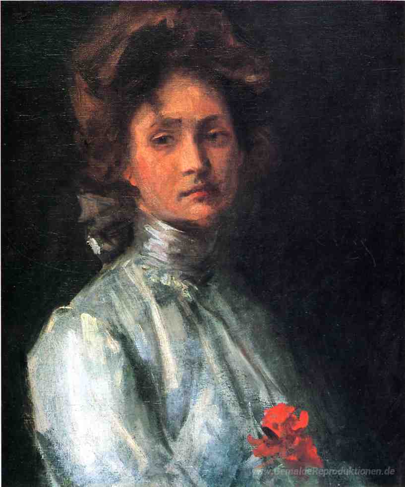 Wir bieten Ihnen eine handgefertigte Reproduktion auf Leinwand des berühmten Kunstwerks 'Portrait einer jungen Frau' von William Merritt Chase, aus dem Reproduktionsmuseum.