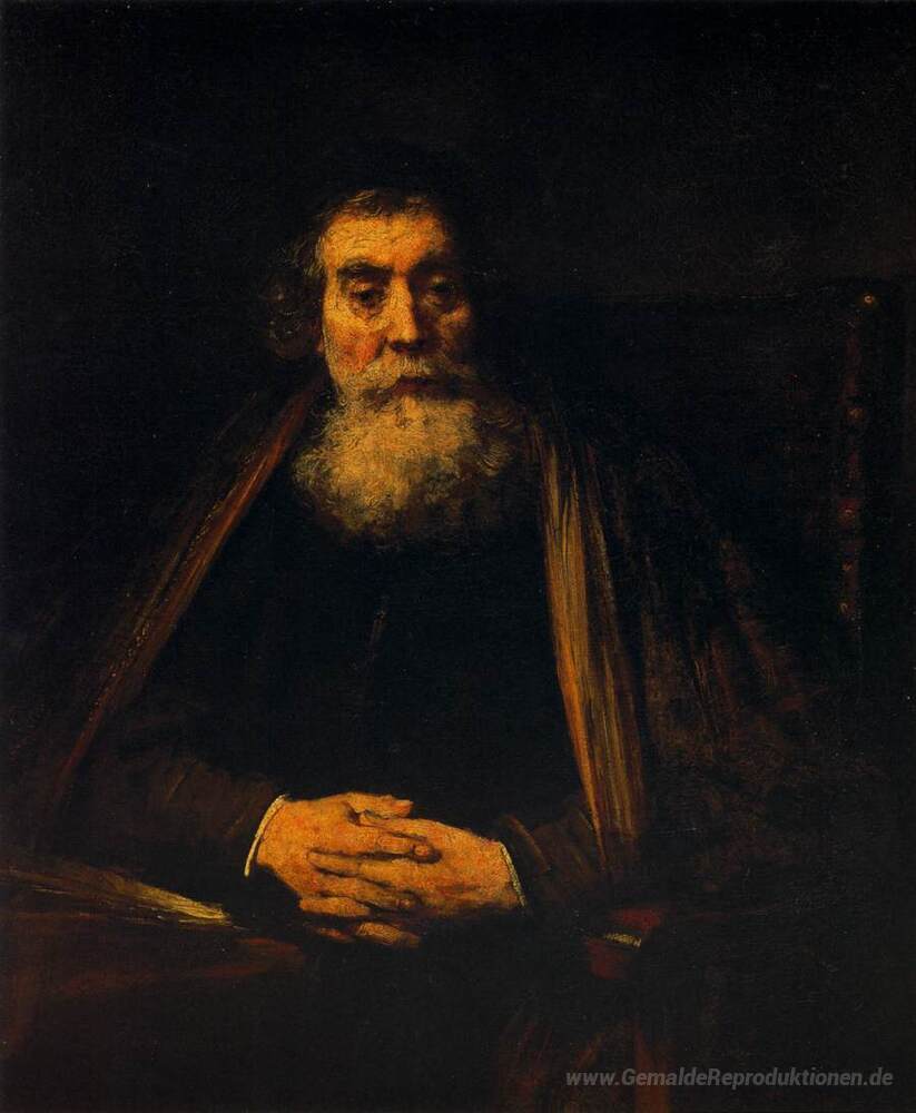 Wir bieten Ihnen eine handgefertigte Reproduktion auf Leinwand des berühmten Kunstwerks 'Portrait eines alten Mannes' von Rembrandt, aus dem Reproduktionsmuseum.
