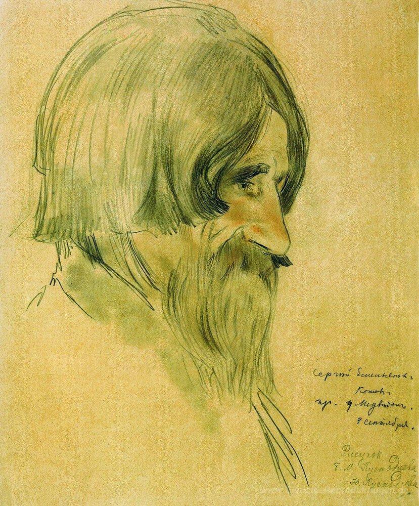Wir bieten Ihnen eine handgefertigte Reproduktion auf Leinwand des berühmten Kunstwerks 'Portrait eines Bauern Kotov' von Boris Kustodiev, aus dem Reproduktionsmuseum.