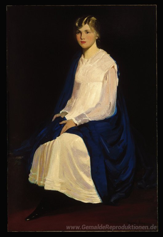 Wir bieten Ihnen eine handgefertigte Reproduktion auf Leinwand des berühmten Kunstwerks 'Portrait eines jungen Mädchens (Antoinette Kraushaar)' von George Luks, aus dem Reproduktionsmuseum.