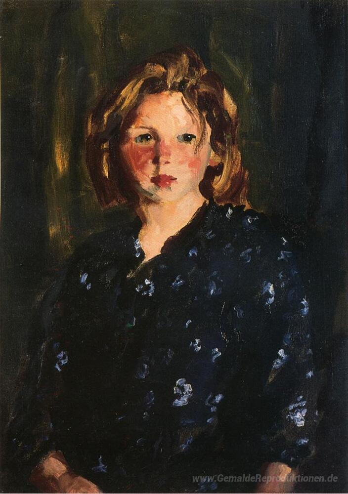 Wir bieten Ihnen eine handgefertigte Reproduktion auf Leinwand des berühmten Kunstwerks 'Portrait eines jungen Mädchens' von Robert Henri, aus dem Reproduktionsmuseum.