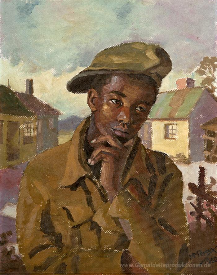 Wir bieten Ihnen eine handgefertigte Reproduktion auf Leinwand des berühmten Kunstwerks 'Portrait eines jungen Mannes,' von George Pemba, aus dem Reproduktionsmuseum.