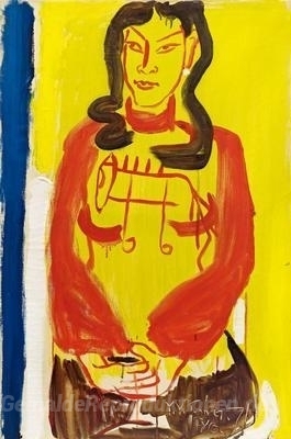 Wir bieten Ihnen eine handgefertigte Reproduktion auf Leinwand des berühmten Kunstwerks 'Portrait mit Pferd' von Ding Yanyong, aus dem Reproduktionsmuseum.