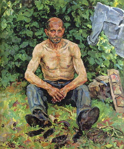 Wir bieten Ihnen eine handgefertigte Reproduktion auf Leinwand des berühmten Kunstwerks 'Portrait Mol Fang Fedor Petrovich' von Pyotr Konchalovsky, aus dem Reproduktionsmuseum.