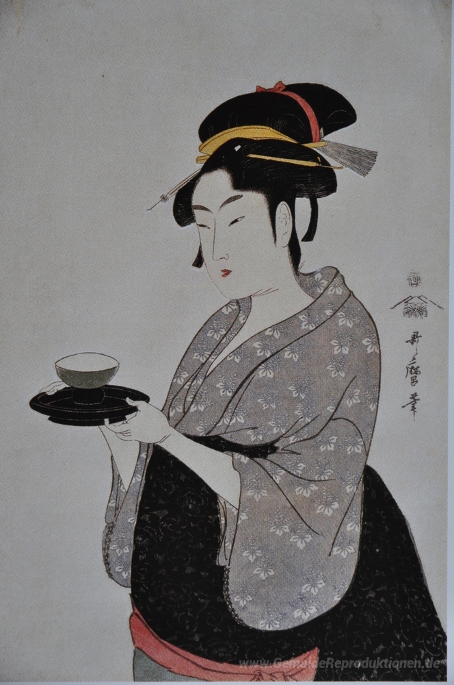 Wir bieten Ihnen eine handgefertigte Reproduktion auf Leinwand des berühmten Kunstwerks 'Portrait Naniwaya Okita' von Kitagawa Utamaro, aus dem Reproduktionsmuseum.