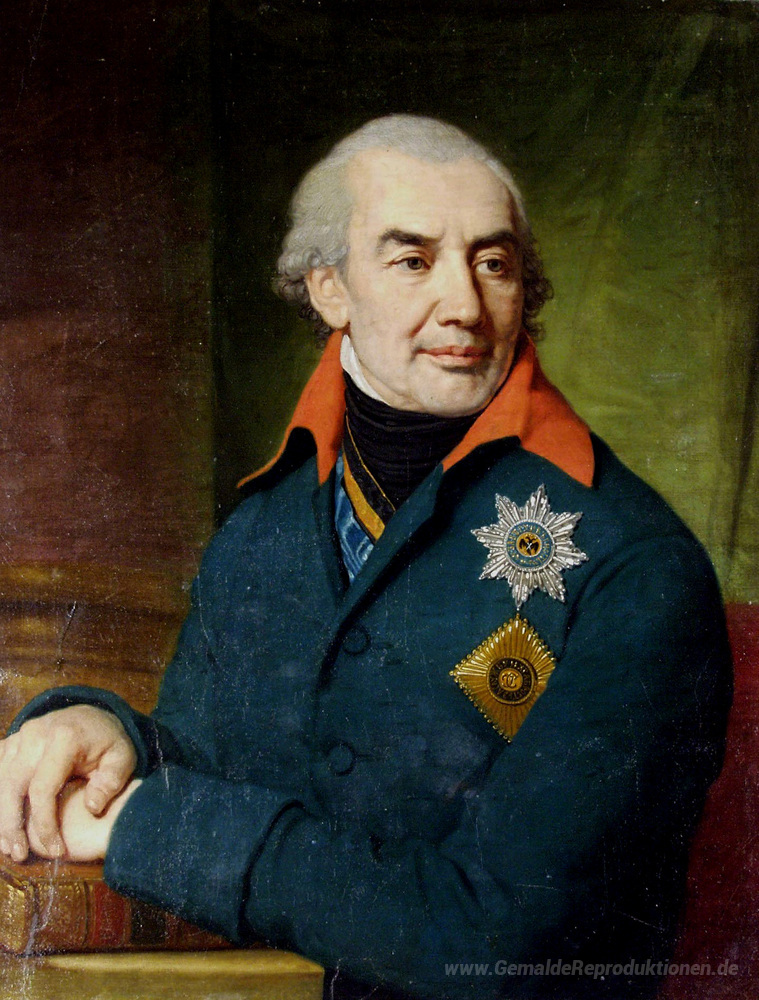 Wir bieten Ihnen eine handgefertigte Reproduktion auf Leinwand des berühmten Kunstwerks 'Portrait of Prince G S Volkonsky' von Vladimir Borovikovsky, aus dem Reproduktionsmuseum.