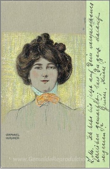 Wir bieten Ihnen eine handgefertigte Reproduktion auf Leinwand des berühmten Kunstwerks 'Portraits der Wiener Damen' von Raphael Kirchner, aus dem Reproduktionsmuseum.
