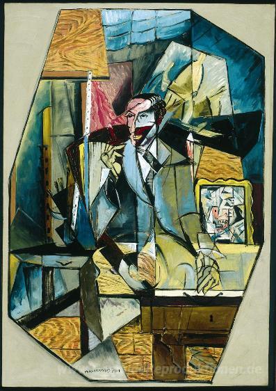 Wir bieten Ihnen eine handgefertigte Reproduktion auf Leinwand des berühmten Kunstwerks 'Portret van Albert Flechteim' von Louis Marcoussis, aus dem Reproduktionsmuseum.