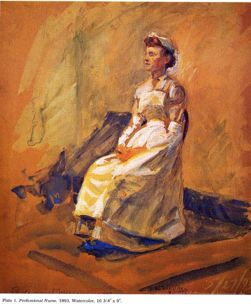 Wir bieten Ihnen eine handgefertigte Reproduktion auf Leinwand des berühmten Kunstwerks 'Professionelle Krankenschwester' von John French Sloan, aus dem Reproduktionsmuseum.