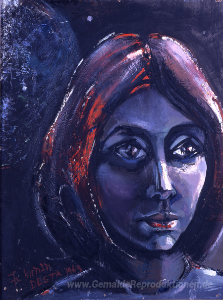 Wir bieten Ihnen eine handgefertigte Reproduktion auf Leinwand des berühmten Kunstwerks 'Remembering Marga' von Gebre Kristos Desta, aus dem Reproduktionsmuseum.