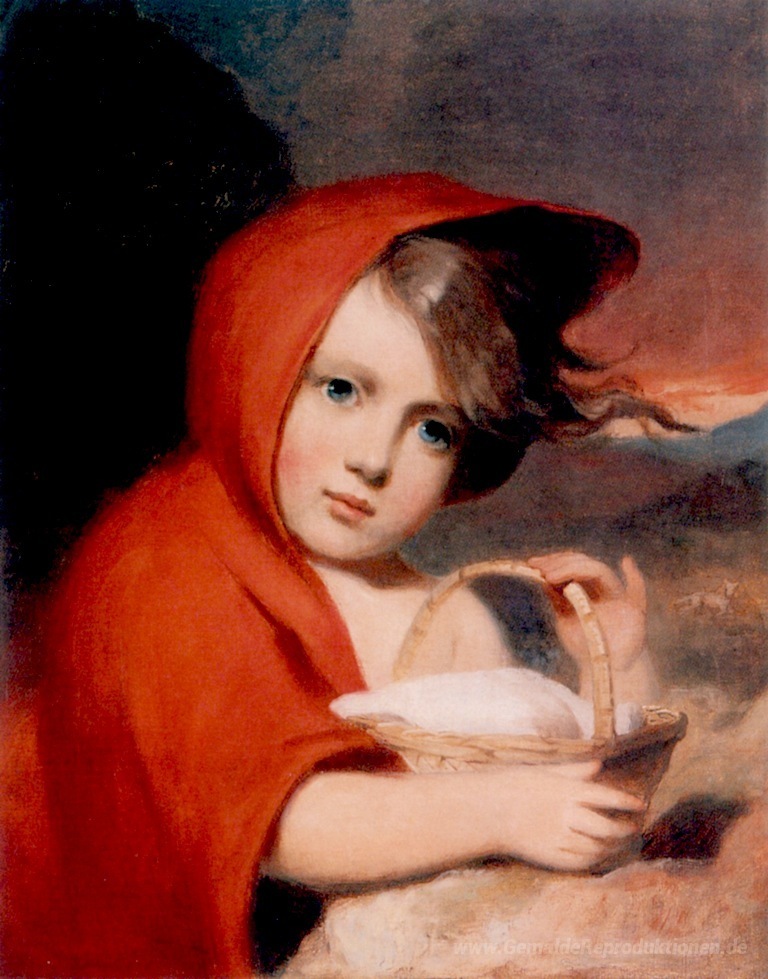 Wir bieten Ihnen eine handgefertigte Reproduktion auf Leinwand des berühmten Kunstwerks 'Rotkäppchen' von Thomas Sully, aus dem Reproduktionsmuseum.