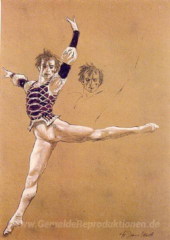 Wir bieten Ihnen eine handgefertigte Reproduktion auf Leinwand des berühmten Kunstwerks 'Rudolf Nureyev' von Jamie Wyeth, aus dem Reproduktionsmuseum.