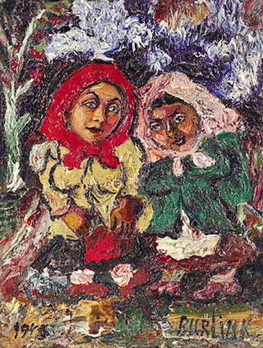 Wir bieten Ihnen eine handgefertigte Reproduktion auf Leinwand des berühmten Kunstwerks 'Russischen Bauern' von David Burliuk, aus dem Reproduktionsmuseum.