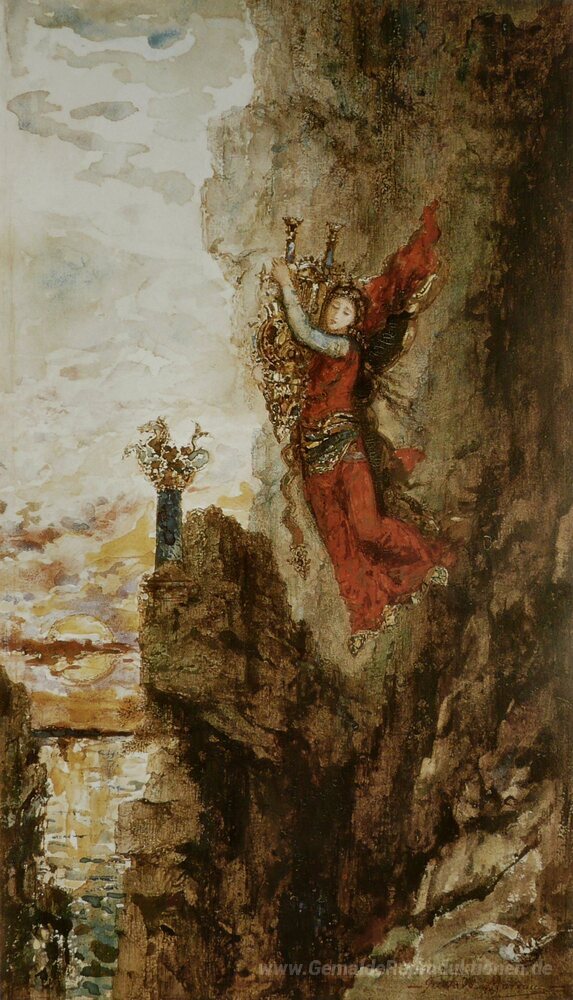 Wir bieten Ihnen eine handgefertigte Reproduktion auf Leinwand des berühmten Kunstwerks 'Sappho in Leucadia' von Gustave Moreau, aus dem Reproduktionsmuseum.