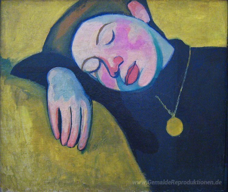 Wir bieten Ihnen eine handgefertigte Reproduktion auf Leinwand des berühmten Kunstwerks 'Schlafendes Mädchen' von Sonia Delaunay, aus dem Reproduktionsmuseum.
