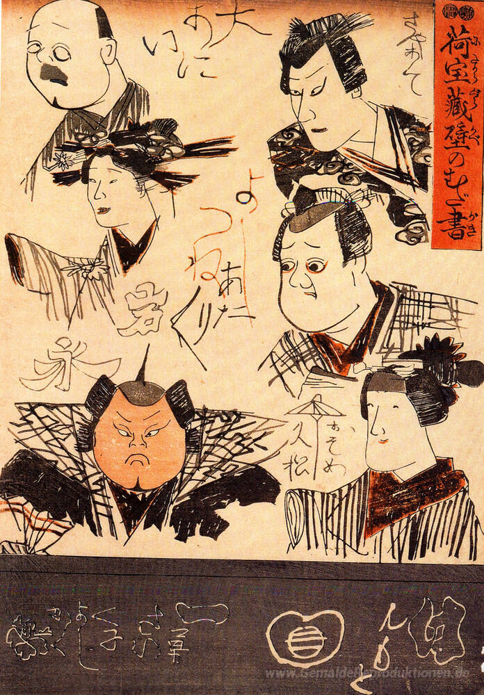 Wir bieten Ihnen eine handgefertigte Reproduktion auf Leinwand des berühmten Kunstwerks 'Scrbbling auf dem Lagerhaus-Wand' von Utagawa Kuniyoshi, aus dem Reproduktionsmuseum.