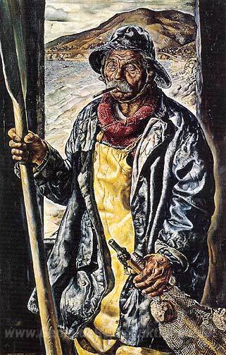 Wir bieten Ihnen eine handgefertigte Reproduktion auf Leinwand des berühmten Kunstwerks 'Seemann' von Ivan Albright, aus dem Reproduktionsmuseum.