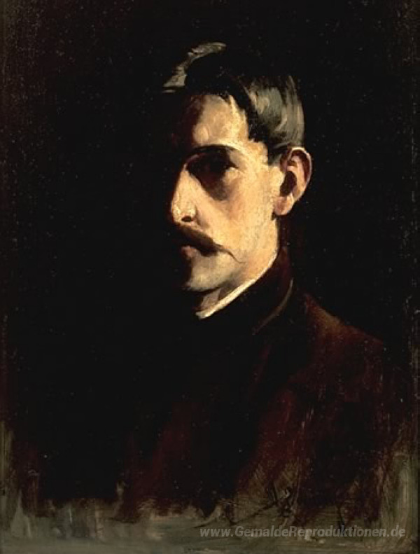 Wir bieten Ihnen eine handgefertigte Reproduktion auf Leinwand des berühmten Kunstwerks 'Self-Portrait' von Willard Metcalf, aus dem Reproduktionsmuseum.