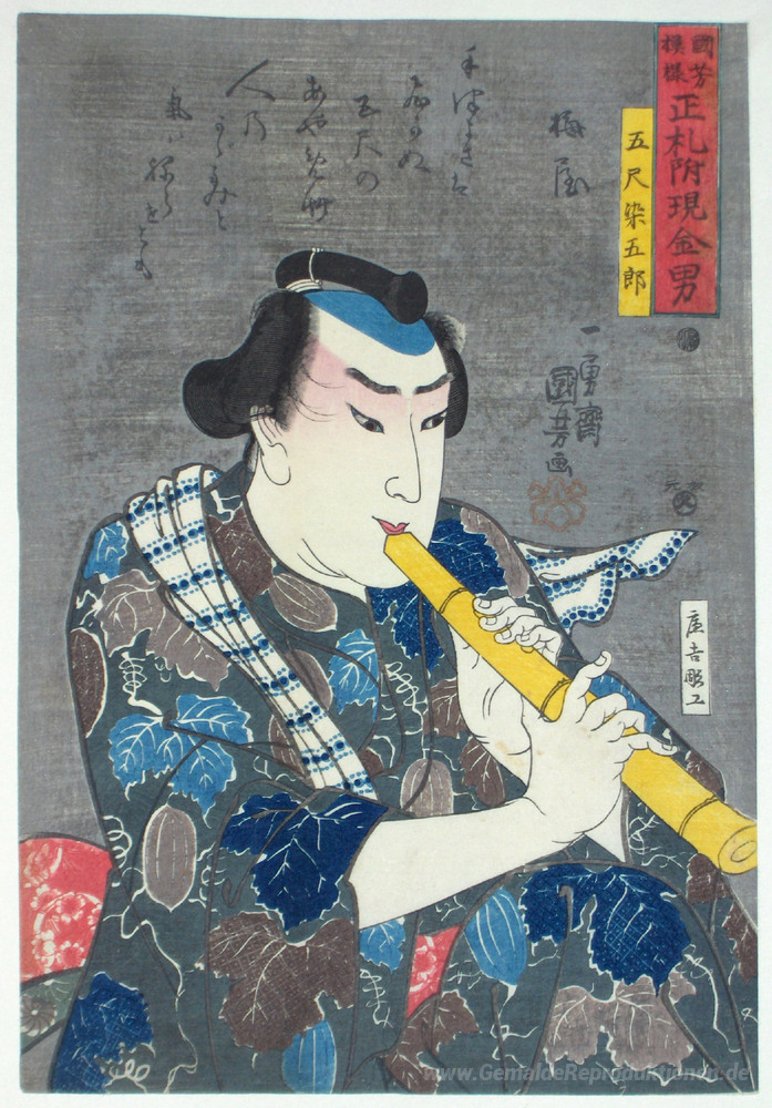 Wir bieten Ihnen eine handgefertigte Reproduktion auf Leinwand des berühmten Kunstwerks 'Shakuhachi-Spieler' von Utagawa Kuniyoshi, aus dem Reproduktionsmuseum.