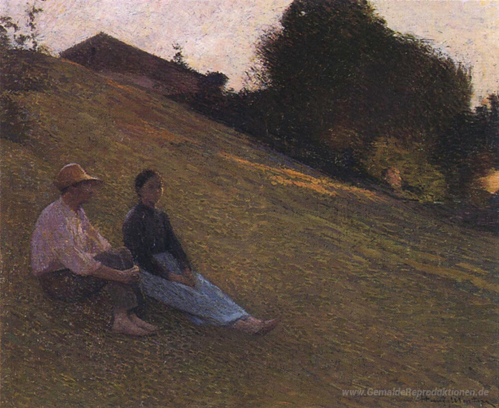 Wir bieten Ihnen eine handgefertigte Reproduktion auf Leinwand des berühmten Kunstwerks 'Sich ausruhen' von Henri Martin, aus dem Reproduktionsmuseum.