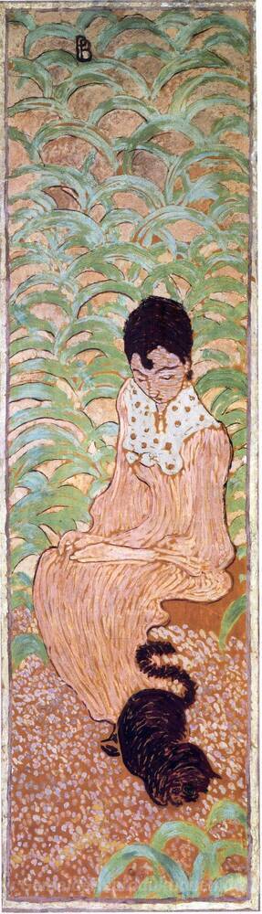 Wir bieten Ihnen eine handgefertigte Reproduktion auf Leinwand des berühmten Kunstwerks 'Sitzende Frau mit Katze' von Pierre Bonnard, aus dem Reproduktionsmuseum.