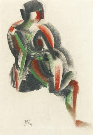 Wir bieten Ihnen eine handgefertigte Reproduktion auf Leinwand des berühmten Kunstwerks 'Sitzende Frau' von Johannes Itten, aus dem Reproduktionsmuseum.