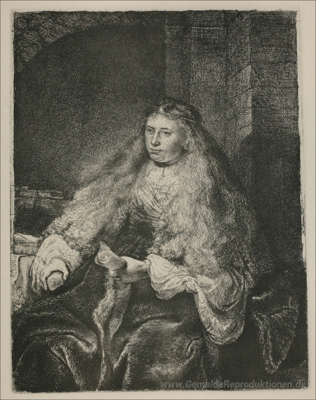 Wir bieten Ihnen eine handgefertigte Reproduktion auf Leinwand des berühmten Kunstwerks 'Study of Saskia genannt der Große jüdische Braut' von Rembrandt, aus dem Reproduktionsmuseum.
